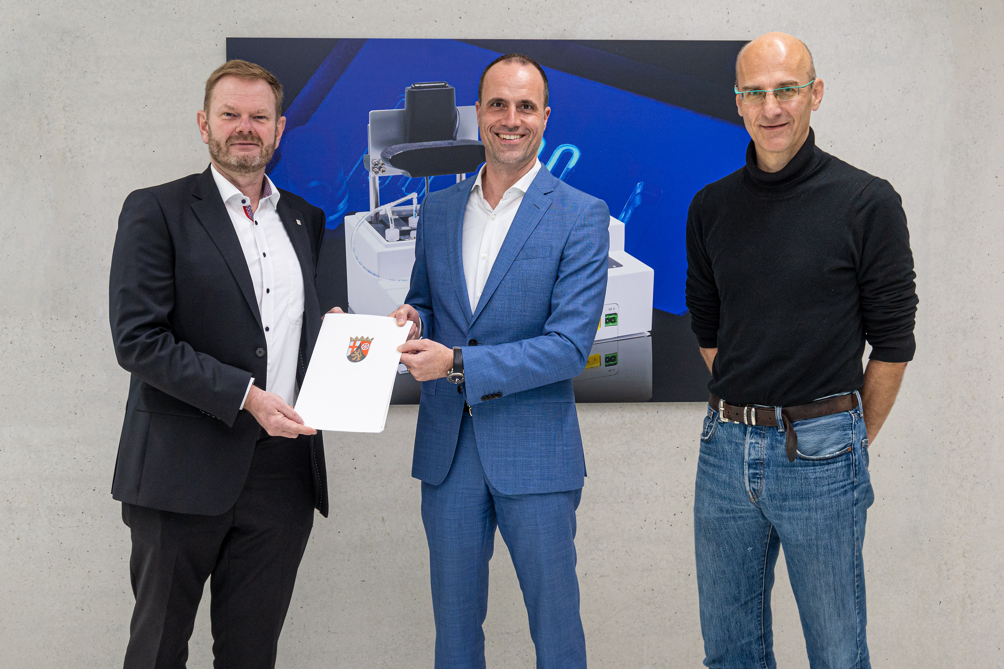 „Mit Blick auf die zunehmende Bedeutung biotechnologischer Herstellungsverfahren leistet die Forschung des IMM durch dieses Projekt einen wichtigen Beitrag, Mainz und die Region zu einem führenden Standort für Biotechnologie und Life Science weiter auszubauen und stärkt dadurch die Innovationskraft des Landes. Es gilt jetzt das Momentum zu nutzen, die Expertise im Land zu halten und in unsere Forscherinnen und Forscher zu investieren. Mit den gewählten Anwendungsfällen im Bereich der Wirkstoffformulierung zielt das IMM auf Anwendungsfelder im Bereich der mRNA-Technologie und Krebstherapie ab und greift damit wichtige Themen mit starkem Wachstumspotential wie Arzneimittel für neuartige Therapien und personalisierte Medizin auf“ sagte Wissenschaftsminister Clemens Hoch bei der Überreichung der Förderung.